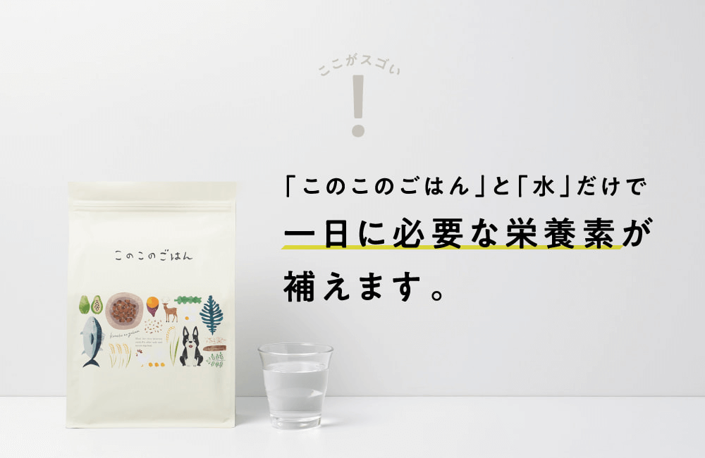 さらに、総合栄養食の基準をクリアしているので「このこのごはん」と「水」だけで1日に必要な栄養素を補うことができます。